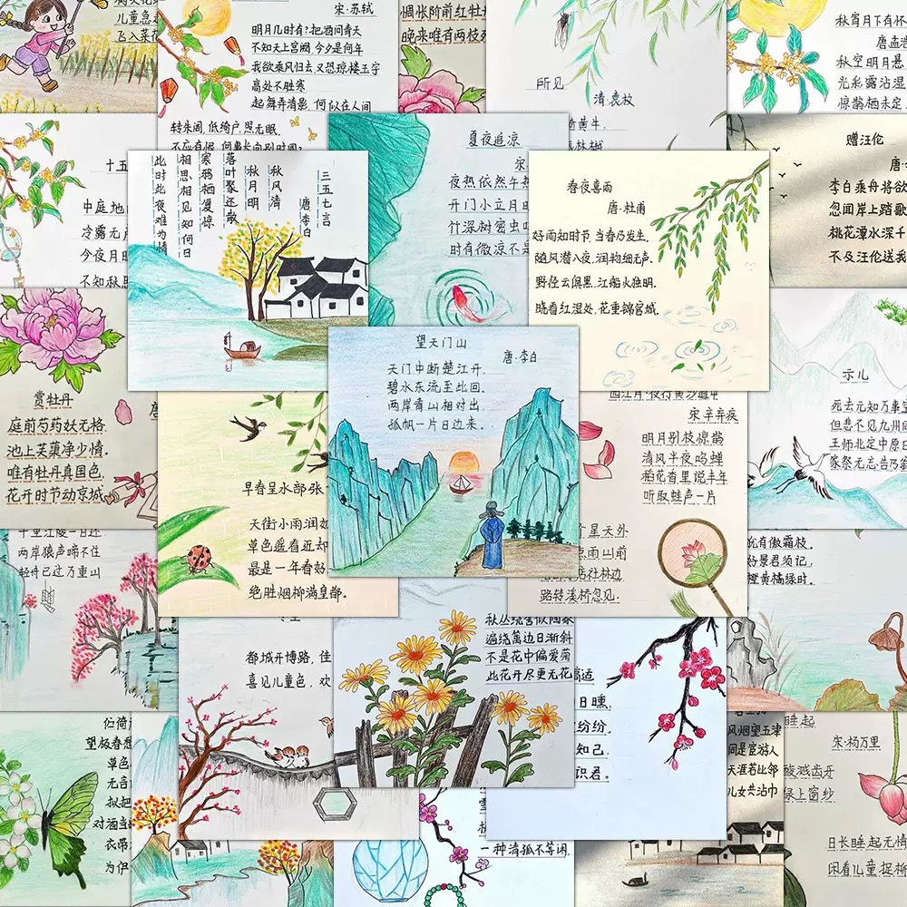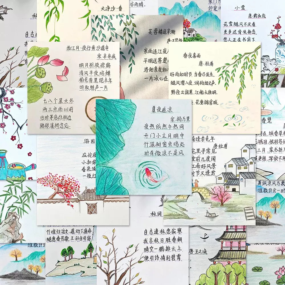 飾 108張古詩配畫學(xué)習(xí)貼紙兒童啟蒙教育古詩知識學(xué)習(xí)手賬桌面diy裝由
