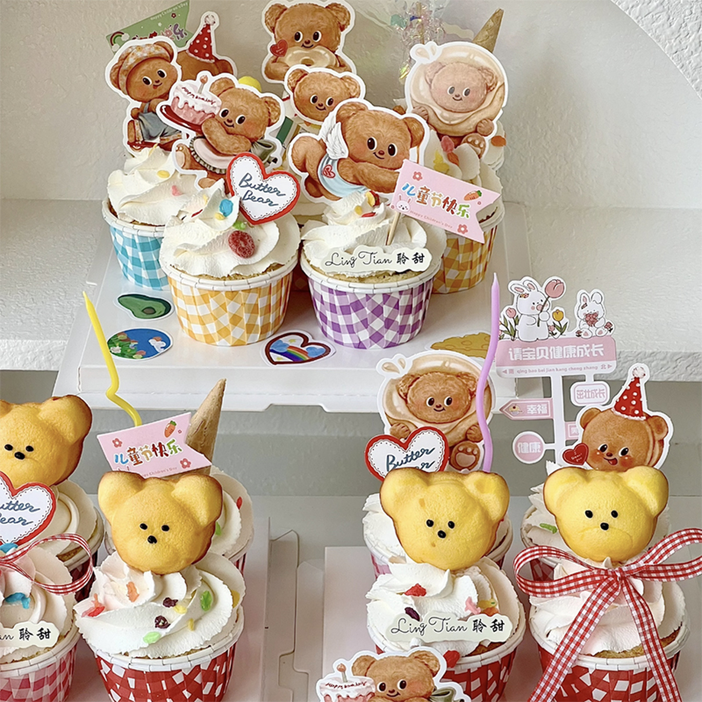 飾擺件可愛(ài)熊頭黃油小熊路牌插件 網(wǎng)紅六一兒童節(jié)烘焙紙杯蛋糕裝由