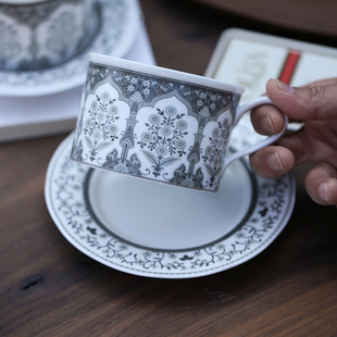 墨色復古咖啡杯碟高檔精致陶瓷拿鐵拉花杯子創意粗陶高級感馬克杯