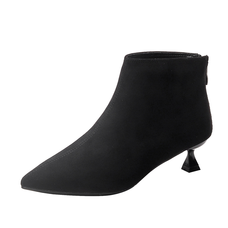 小跟3cm工作鞋 秋冬細跟貓跟5厘米尖頭加絨高跟鞋 短靴女2025年新款由