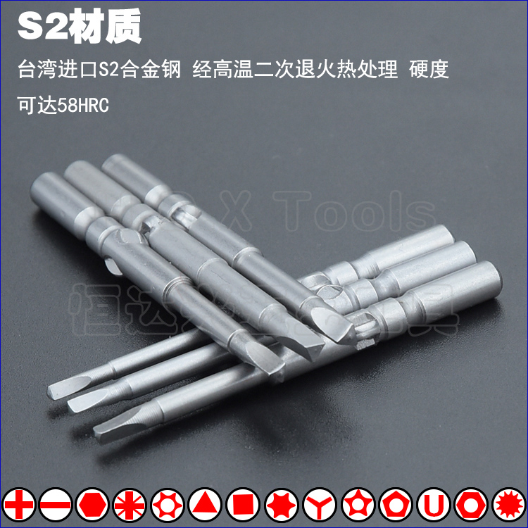 D2合金鋼防滑強磁抗沖擊電動六角十字螺絲批頭 D2雙截棍防滑單頭