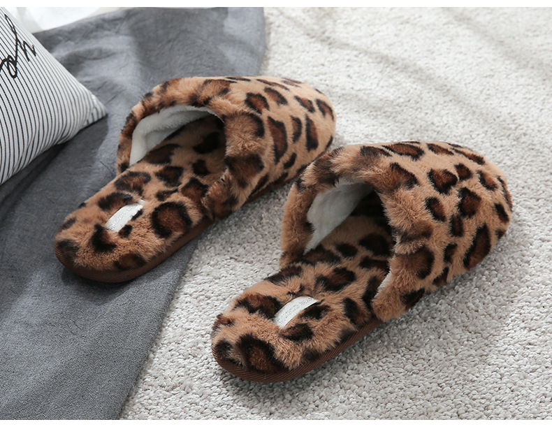 拖鞋 女士棉拖鞋 時尚 豹紋防滑居家四季 透氣毛絨布藝拖鞋由