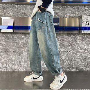 兒童褲 多多家男童牛仔褲 2025新款 春秋款 子中大童直筒百搭洋氣長褲