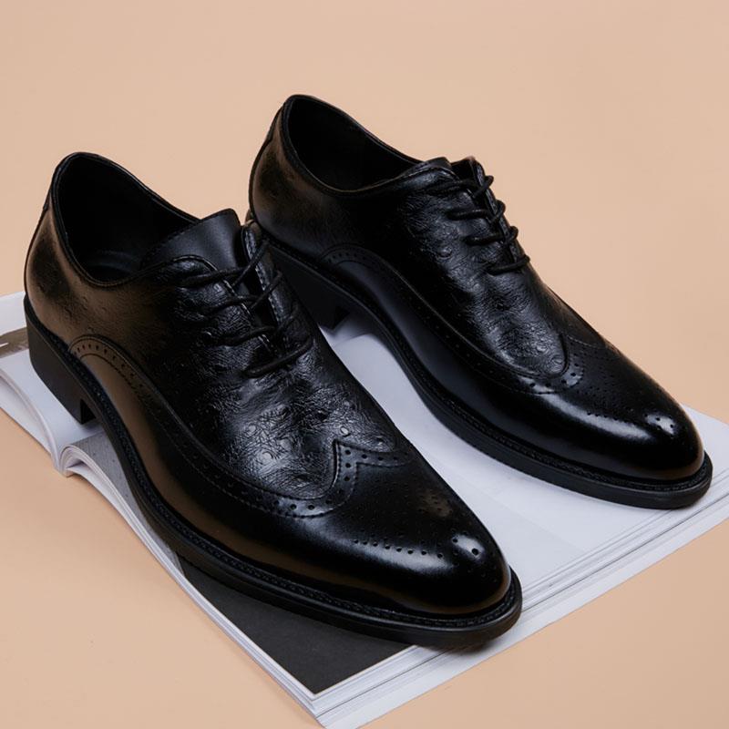 內增高婚鞋 紅蜻蜓男皮鞋 英倫風大碼 鞋 結婚布洛克真皮商務正裝 男士