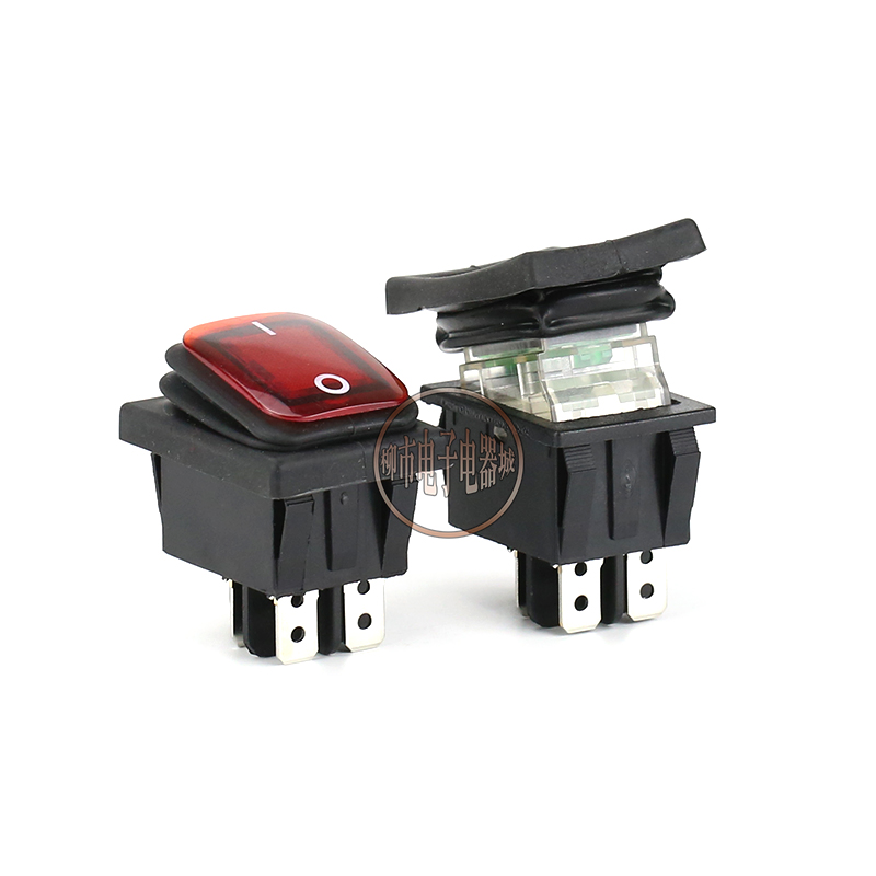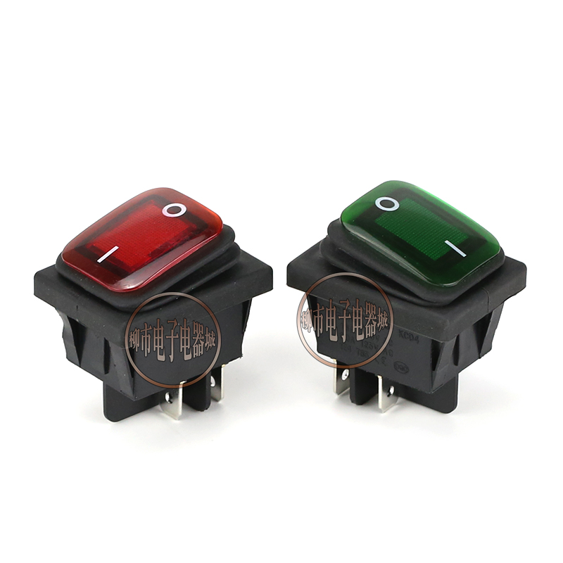 防水船型開關16A4腳2檔紅色綠色帶燈四腳翹板電源銀觸點由