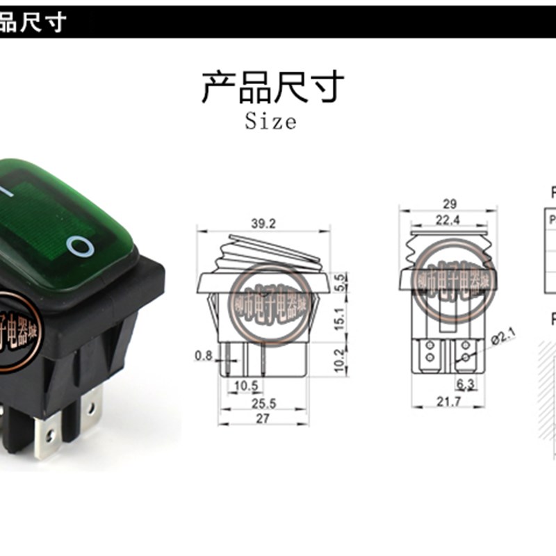 綠燈31 25mm16A250V 6腳紅 KCD4船形開關船型翹板大功率電源按鈕4
