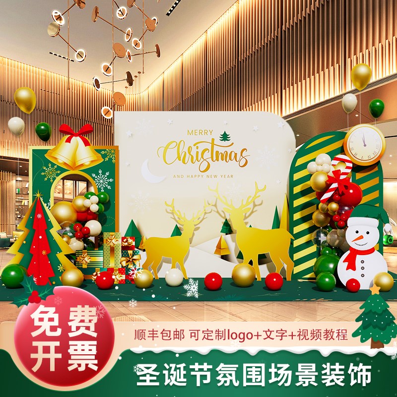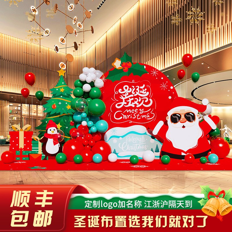 速發圣誕節布置場景裝 扮道具氣球背景墻 飾氛圍商場店鋪圣誕老人裝由