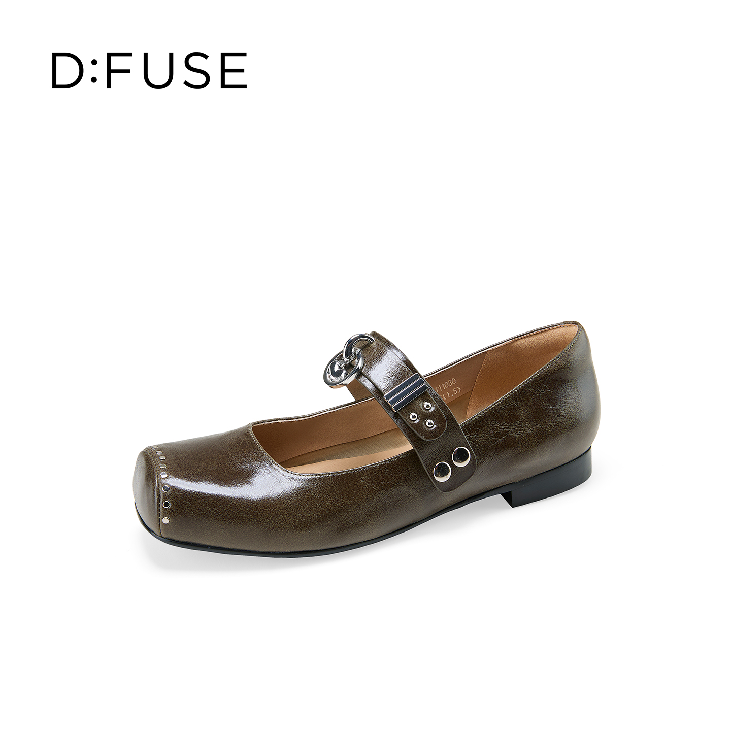 Dfuse迪芙斯2025秋季 一字帶心形扣單鞋 方頭鉚釘瑪麗珍芭蕾鞋 新款由