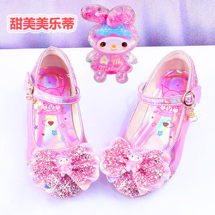 庫洛米軟底女童高跟鞋 美樂蒂小孩皮鞋 兒童鞋 春秋愛莎公主水晶單鞋由