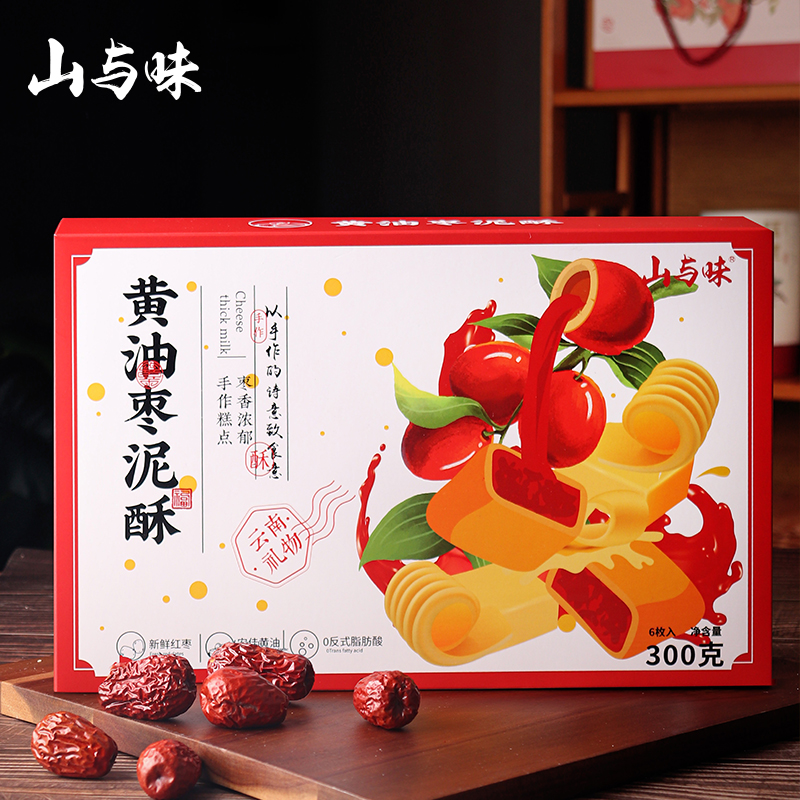 山與味 糕點心零食酥餅6枚裝 送伴手禮盒裝 手作黃油棗泥酥中式由