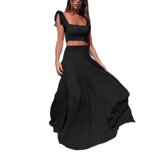 women dress set 2025歐美性感優雅彈力花邊純色長裙兩件套 vest由