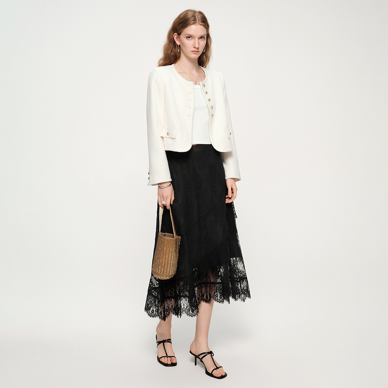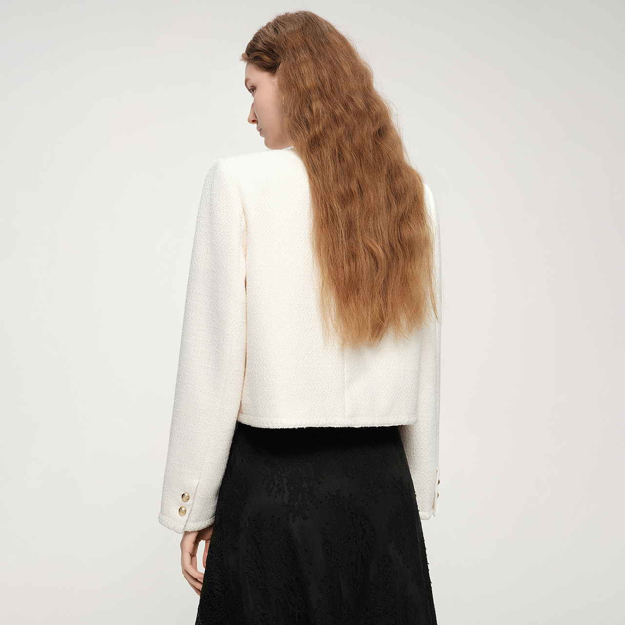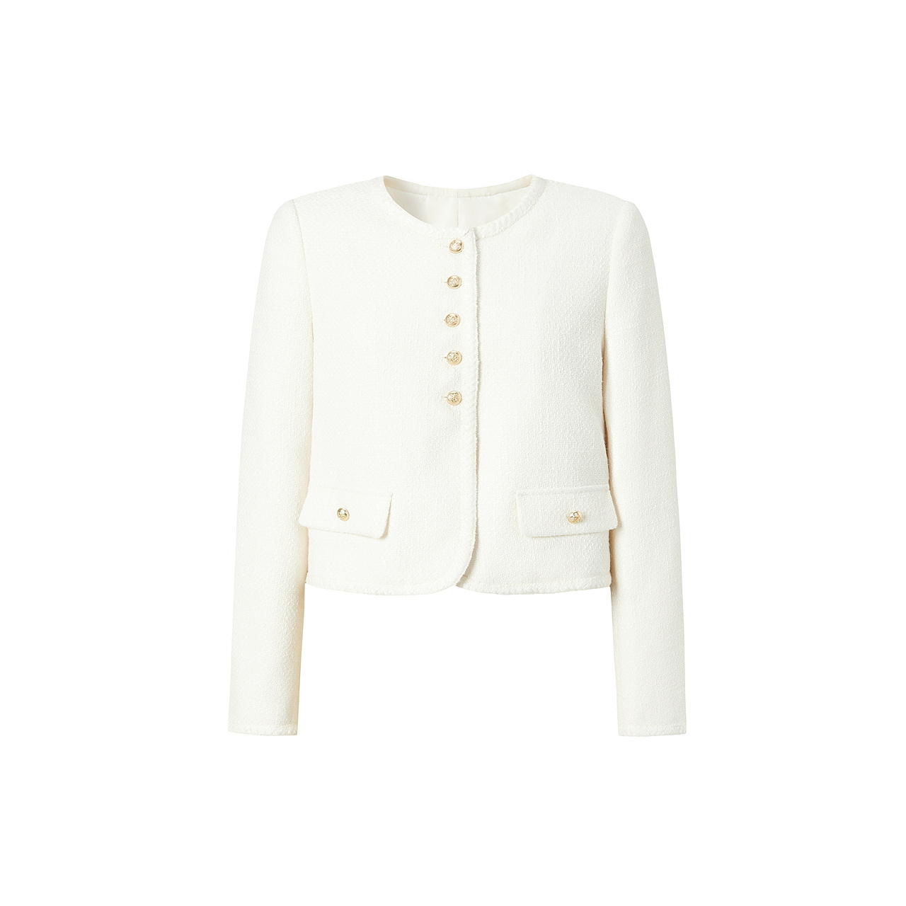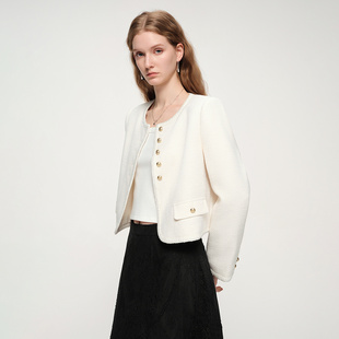 粗花呢圓領米白色優雅小香風短外套女 MOISSAC摩薩克2025秋新款由