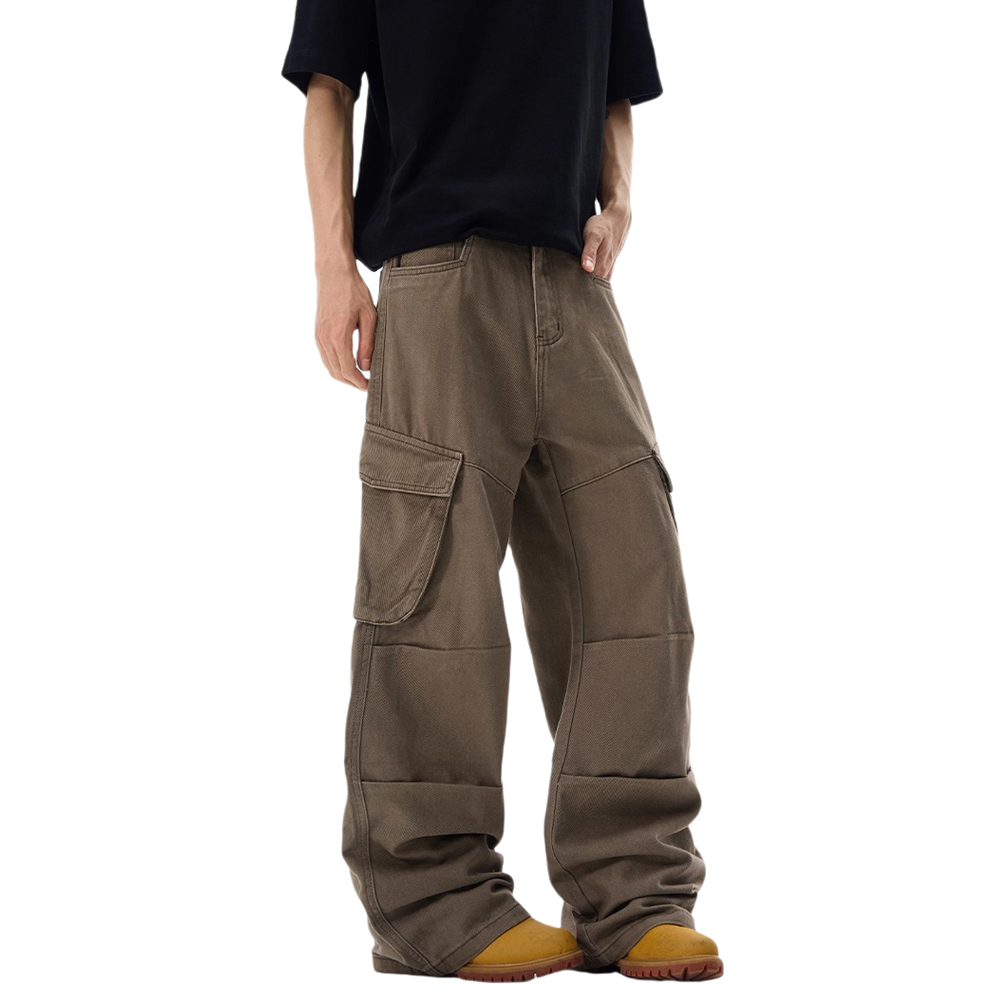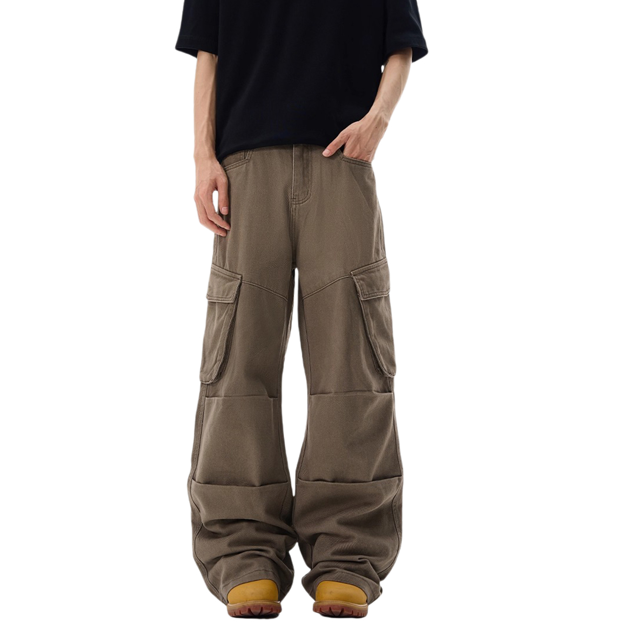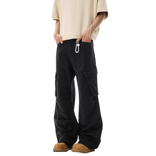 悟空有貨潮牌美式 褲 男復(fù)古寬松高街闊腿休閑長(zhǎng)褲 褶皺水洗直筒工裝