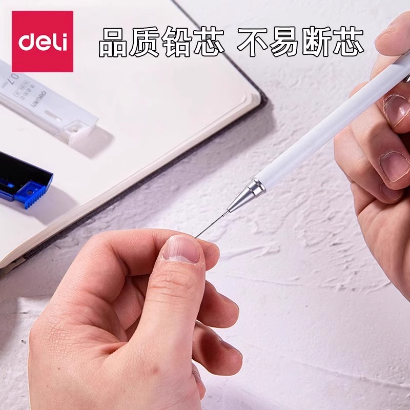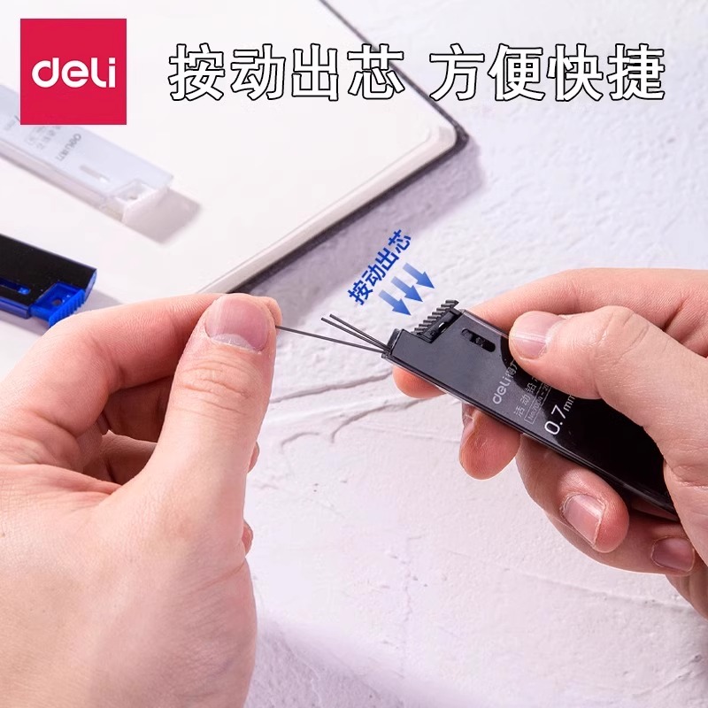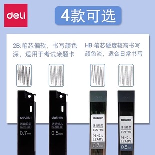 得力自動鉛筆芯0.5mm鉛芯不易斷耐用HB鉛芯學生書寫2B考試涂卡替換芯0.7mm學習筆記專用便攜按動鉛筆加黑替芯