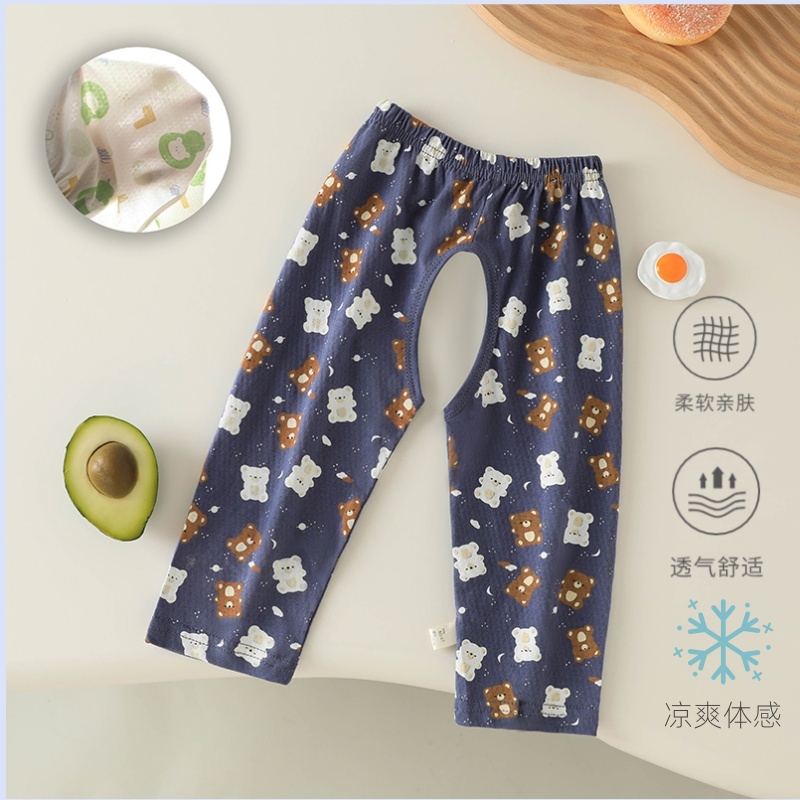 小童空調褲 婧麒嬰兒開襠褲 子寬松 網眼透氣睡褲 寶寶七分褲 夏季 薄款由
