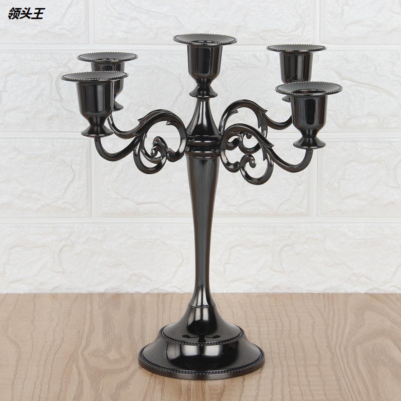 復(fù)古歐式 蠟燭臺座 鐵藝燭臺擺件家用餐桌浪漫燭光晚餐道具三頭法式
