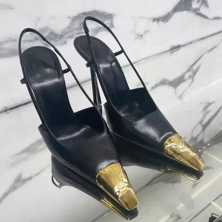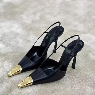 氣質漆皮細跟女鞋 2025年春夏新款 金屬方頭高跟鞋 包頭涼鞋 后空單鞋由