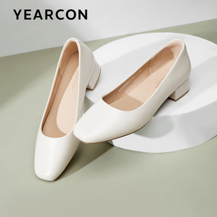 意爾康通勤高跟鞋 新款 真皮百搭淺口粗跟工作面試單鞋 女 女2025秋季由
