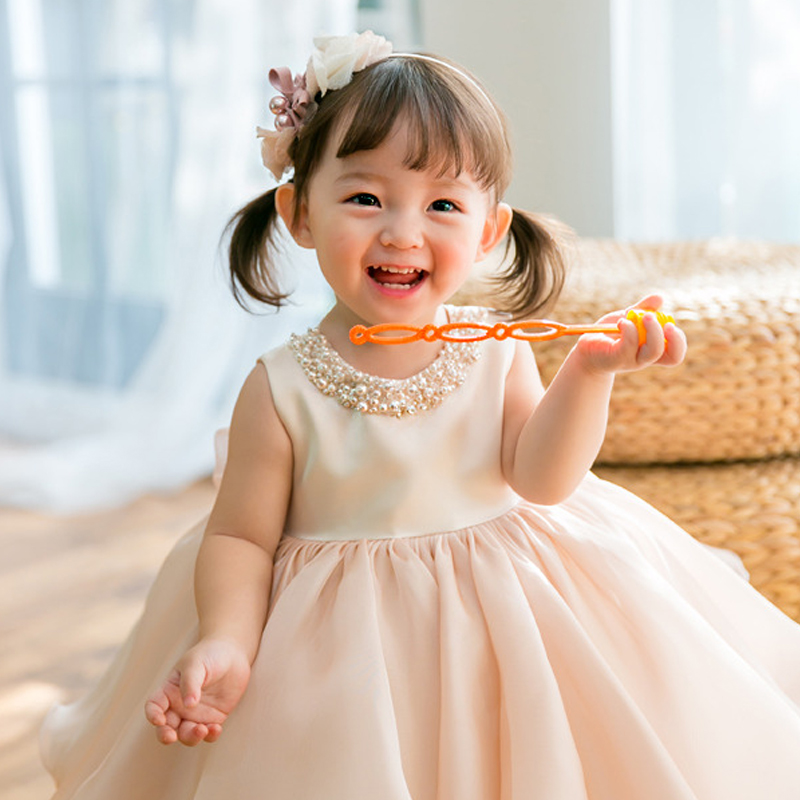 高端女寶寶生日連衣裙兒童一周歲禮服裙子 高定緞面公主裙女童夏裝