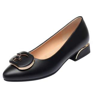 正裝 百搭 淺口尖頭羊皮鞋 女黑色小皮鞋 靜音系列 千百度通勤單鞋