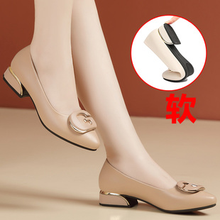 千百度裸色細高跟鞋 淺口氣質通勤單鞋 女真皮不累腳 靜音系列