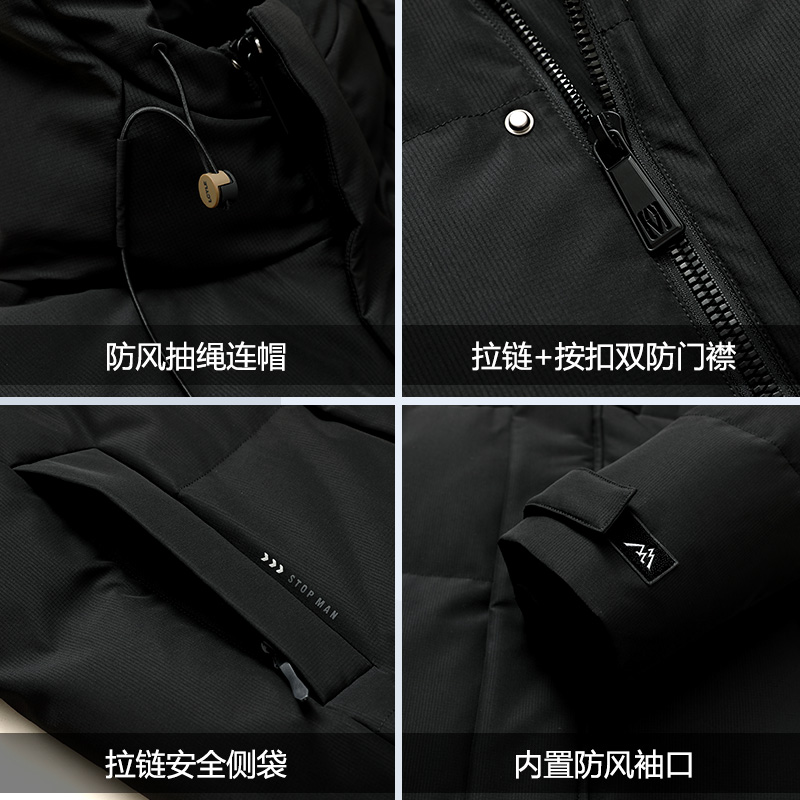 波司登2025新款 男款 羽絨服保暖防風90羽絨可拆卸帽加厚中長款 冬季