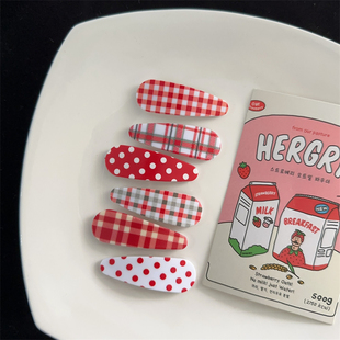 復(fù)古紅色波點(diǎn)格子小發(fā)夾少女心可愛邊夾BB夾學(xué)生劉海夾子發(fā)飾頭飾由