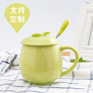 杯子水杯咖啡杯情侶杯馬克杯帶蓋勺定制 創意陶瓷杯可愛早餐杯個性由