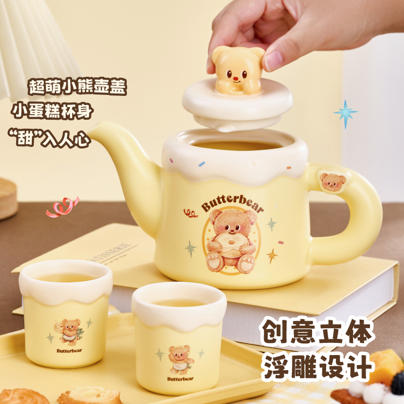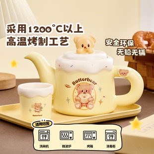 喬遷家用茶壺高顏值陶瓷下午茶茶具 言倉黃油小熊實用茶壺套裝由