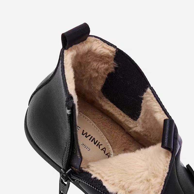 winkaa秋冬新貓咪兒童皮靴加絨加毛女童公主寶寶靴子毛靴 little由