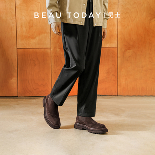高級感 BeauToday英倫風切爾西靴男秋冬厚底增高短靴真皮靴子男鞋由