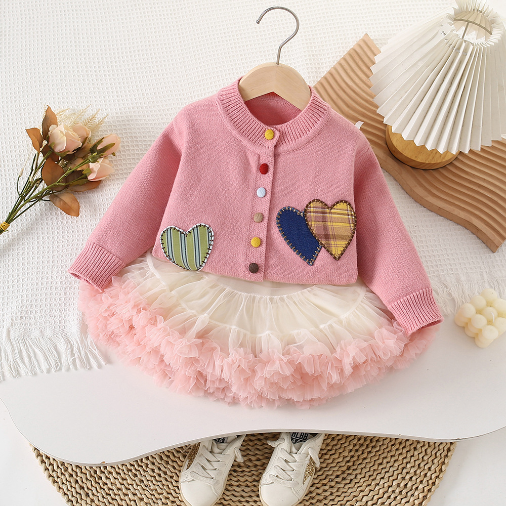 女童針織衫 網(wǎng)紗tutu裙韓版 春秋季 2025新款 兩件套 外套洋氣毛衣開(kāi)衫由