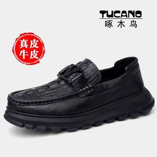 啄木鳥男鞋 牛皮鱷魚豆豆鞋 真皮軟底一腳蹬駕車休閑皮鞋 男 2023新款由