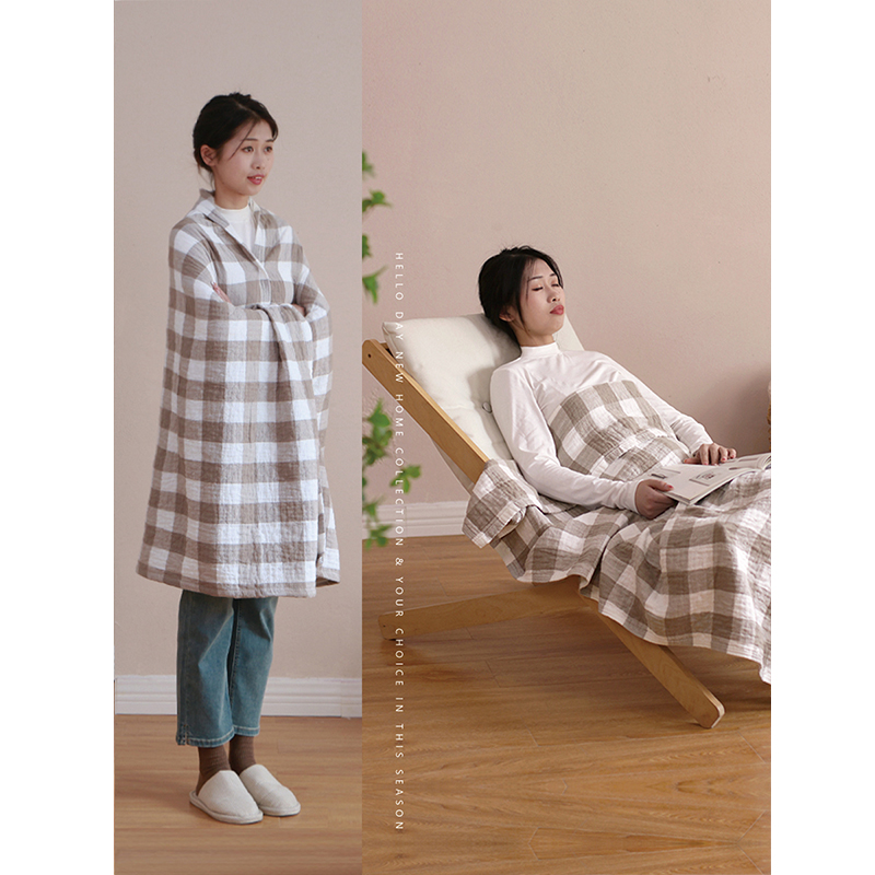 全棉辦公室午睡毯披肩毯子夏天薄毛巾被純棉空調毯斗篷午休毯 日式由
