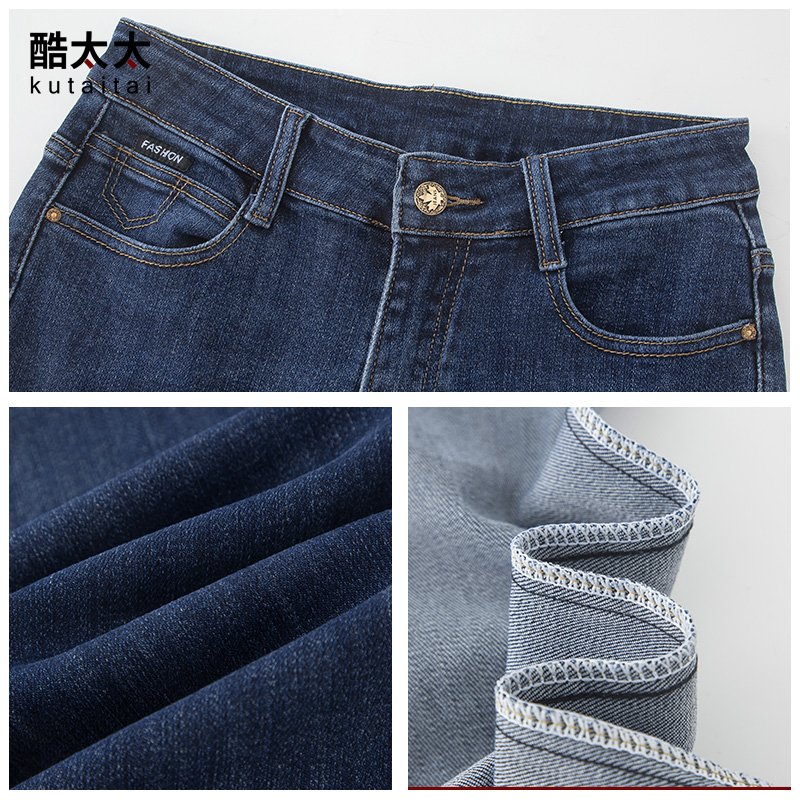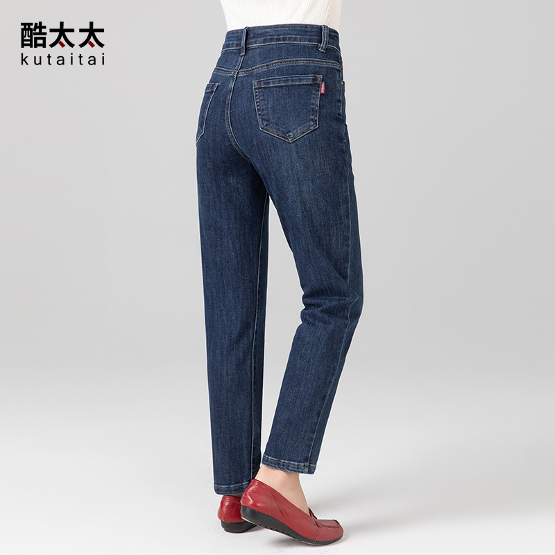 修身 酷太太大碼 直筒媽媽牛仔褲 中年女褲 藍色 彈力2025春秋高腰長褲由