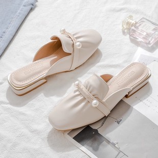 外穿瑪麗珍鞋 金屬方頭平跟包頭半拖鞋 女2025春夏新款 軟底拖鞋 單鞋