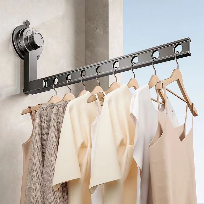 吸盤(pán)伸縮晾衣架可折疊陽(yáng)臺(tái)家用室內(nèi)多功能隱形架子旅行曬衣服神器