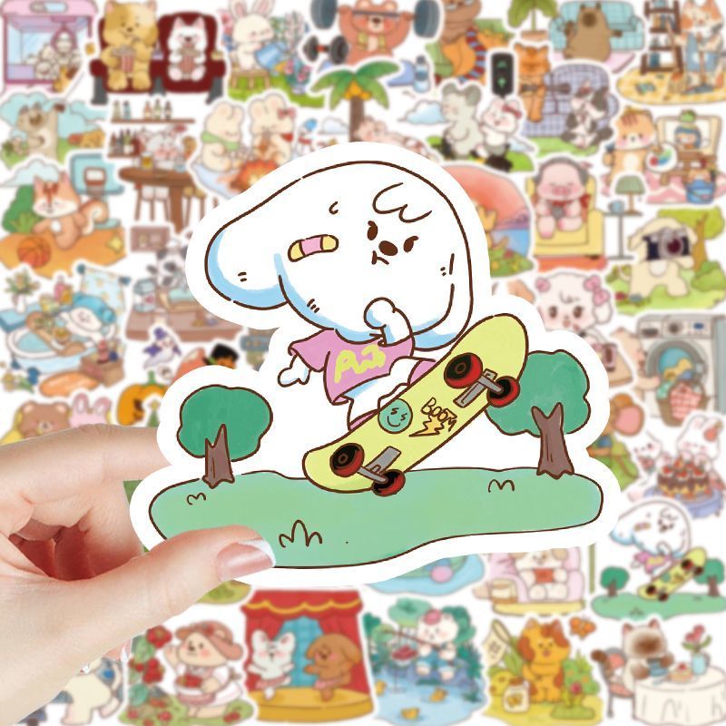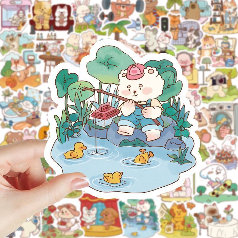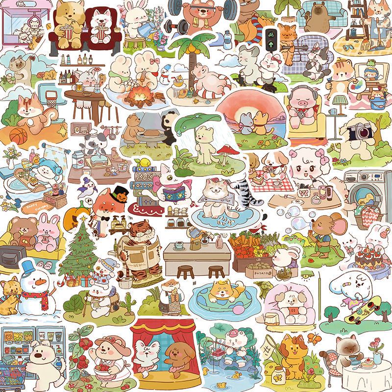 飾貼畫手機殼 120張可愛卡通小動物日常生活寫實貼紙創(chuàng)意手賬diy裝由