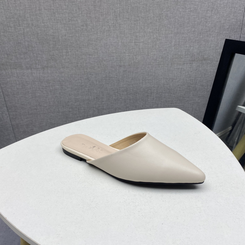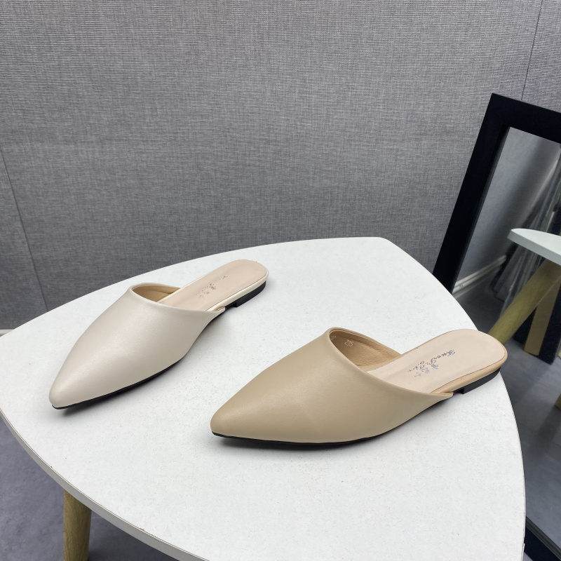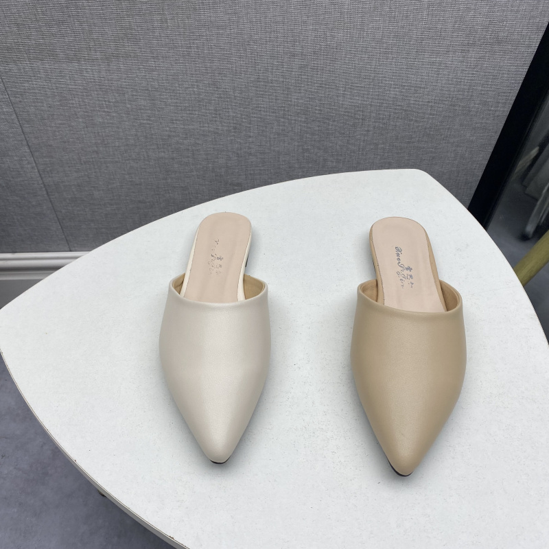 真皮女鞋 工廠斷碼 2025夏季 新款 一腳蹬外穿女拖 尖頭平底包頭半拖鞋由