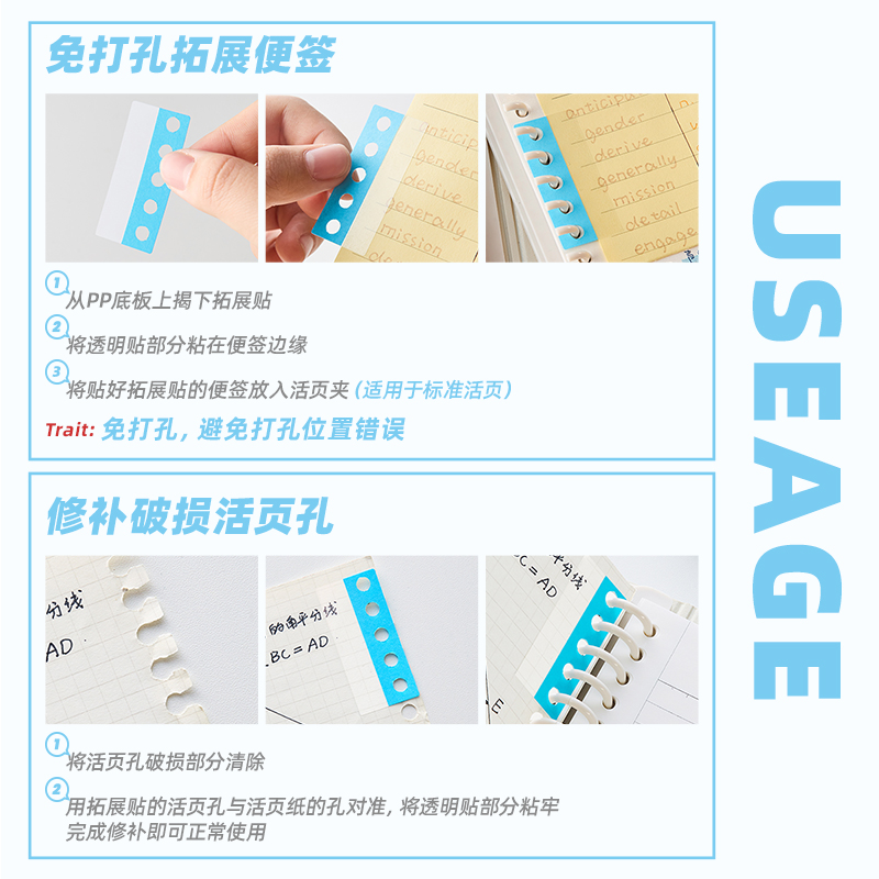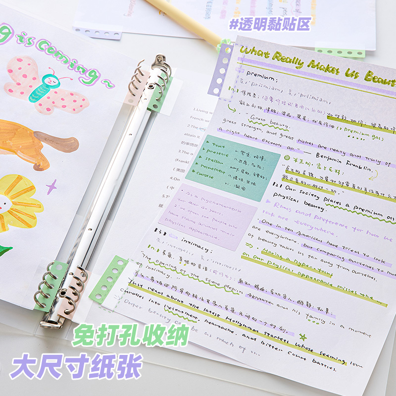 三年二班撞色活頁孔位擴展貼外掛便利貼活頁紙補孔貼本免打孔貼紙活頁便簽帶孔索引貼高顏值拓展考研學習文具由