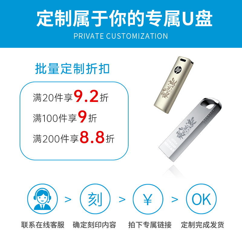 惠普金屬u盤定制企業批量刻制優盤簽名logo生肖星座 U盤刻字由