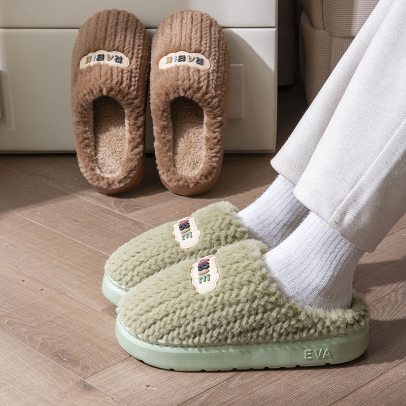 毛絨保暖情侶家居室內厚底棉拖男款 女士秋冬季 買一送一針織棉拖鞋由