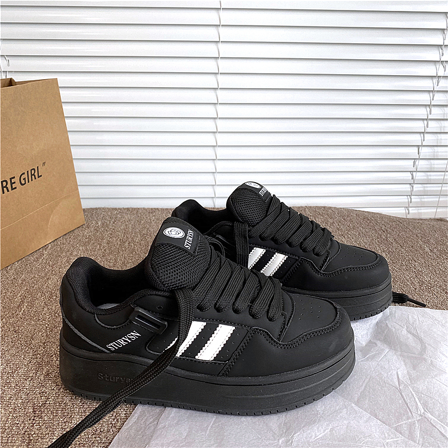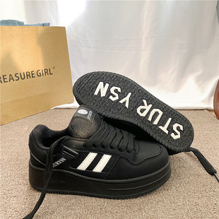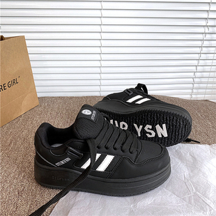 小白鞋 厚底增高港風(fēng)黑色休閑板鞋 女ins潮2025秋季 新款 百搭面包鞋由