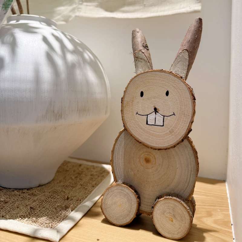 飾 森系卡通手工DIY香樟圓木片小兔子桌面擺件家居店鋪幼兒園裝由