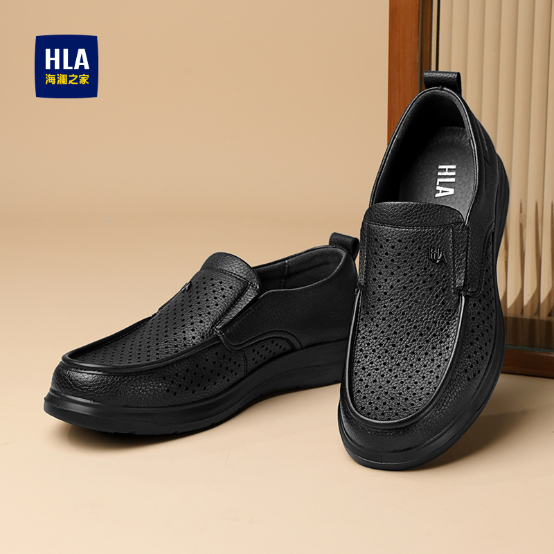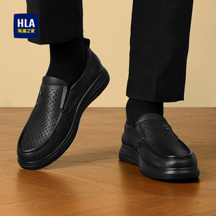 海瀾之家男鞋 透氣上班通勤休閑一腳蹬樂福鞋 厚底父親休閑皮鞋 秋季由
