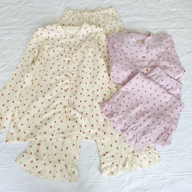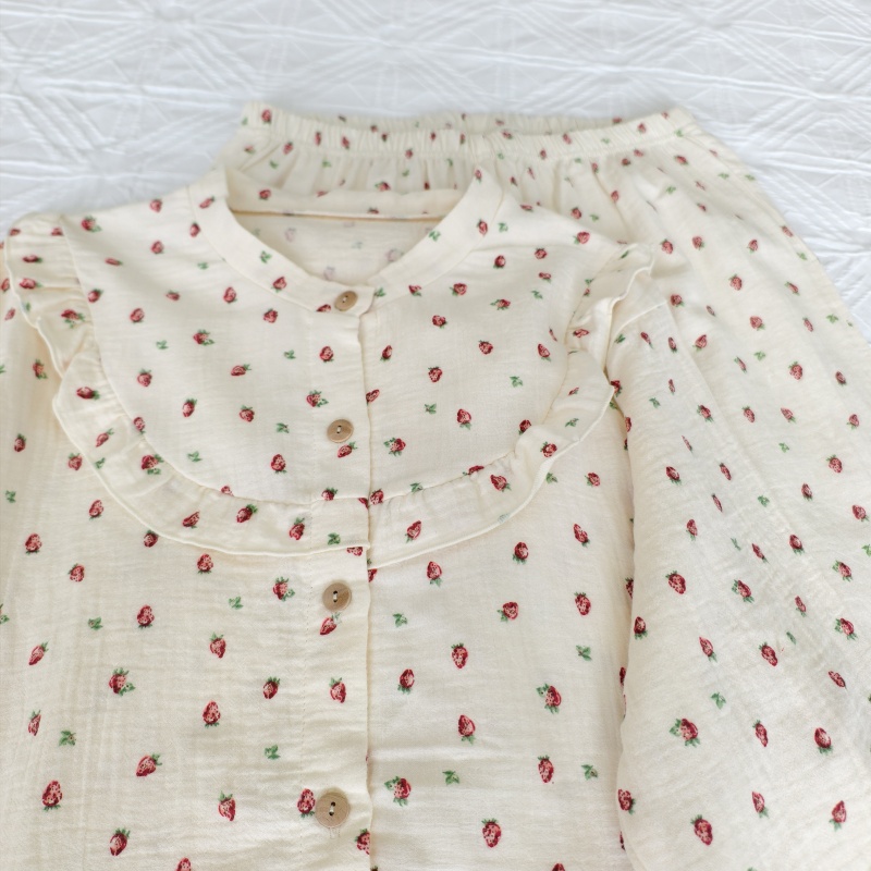 小草莓純棉睡衣女長袖 新款 秋季 家居服套裝 包郵 長褲 外貿日單tutu由