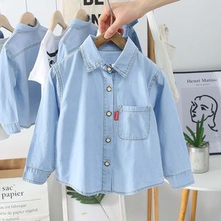 兒童軟牛仔襯衣秋季 男女童純色上衣長袖 寶寶襯衫 外套洋氣 2025新款