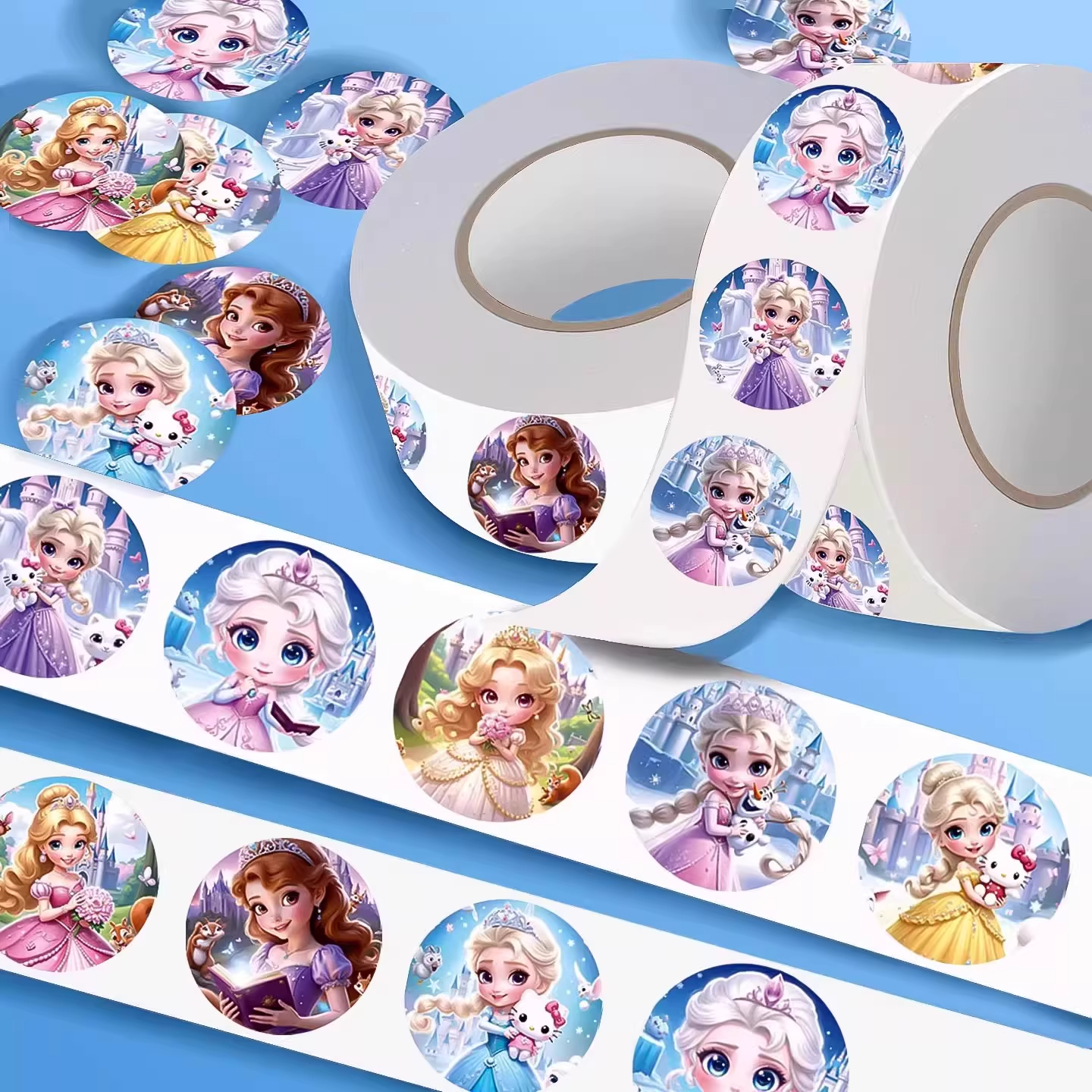 飾小貼畫兒童艾莎貼紙手賬膠布卡通可愛獎勵貼紙膠帶圓點封口貼紙幼兒園玩具貼紙 愛莎公主卷卷貼封口貼女孩裝由