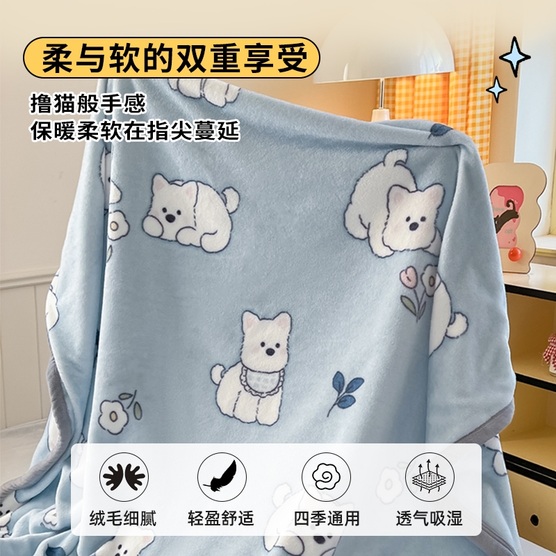 休閑秋冬卡通蓋毯沙發(fā)毯學(xué)生宿舍午睡毛毯宿舍絨毯 布丁狗暖暖毯