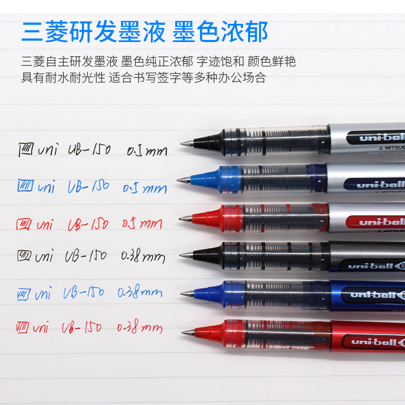 日本uniball三菱UB 走珠筆0.5mm水性簽字筆0.38黑色水筆ub150學(xué)生用刷題黑筆碳素筆進(jìn)口文具 150中性筆直液式由
